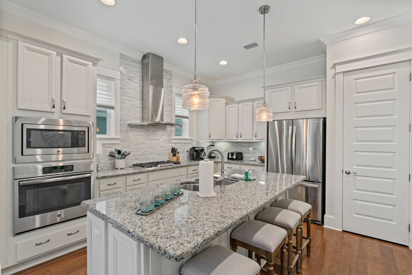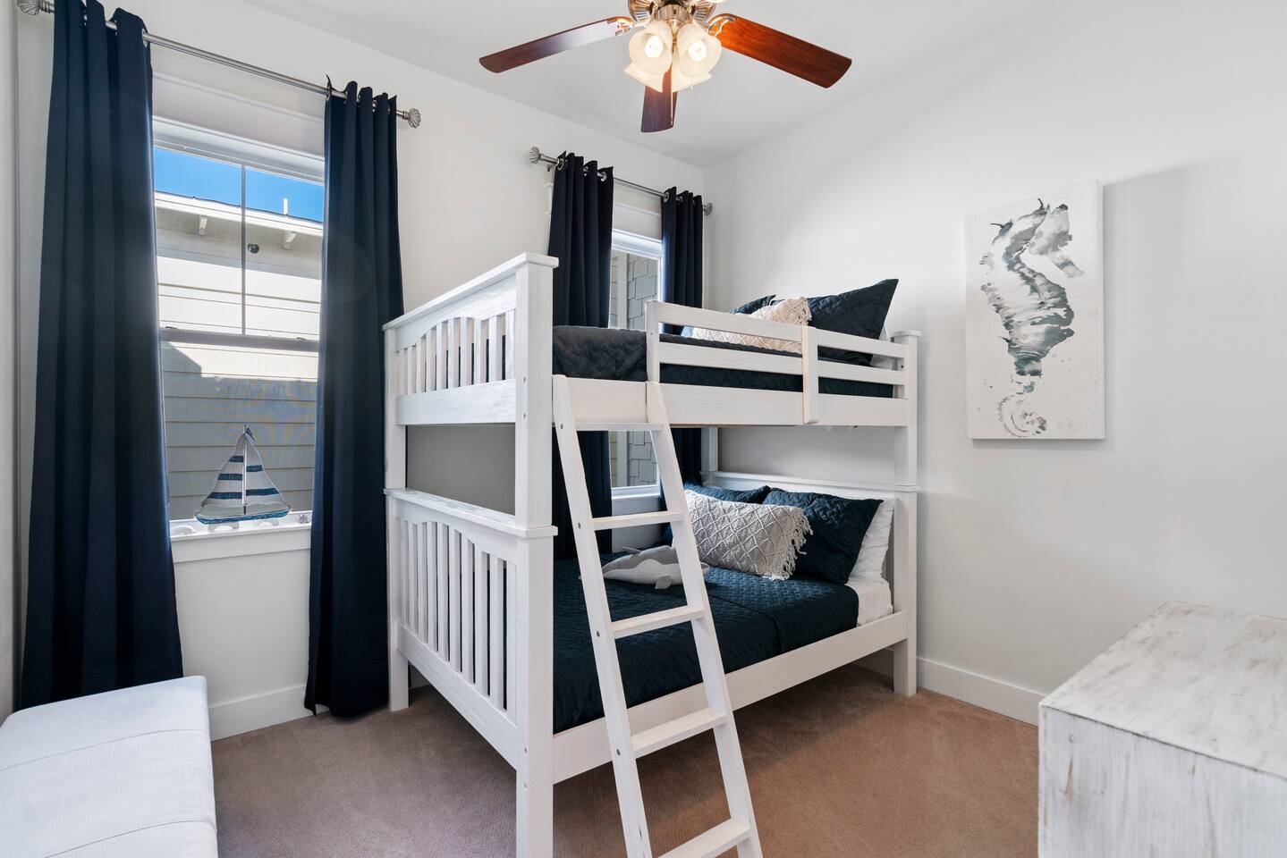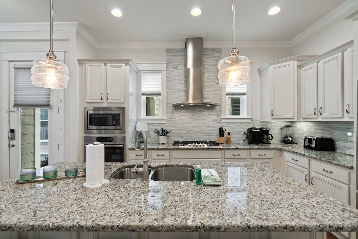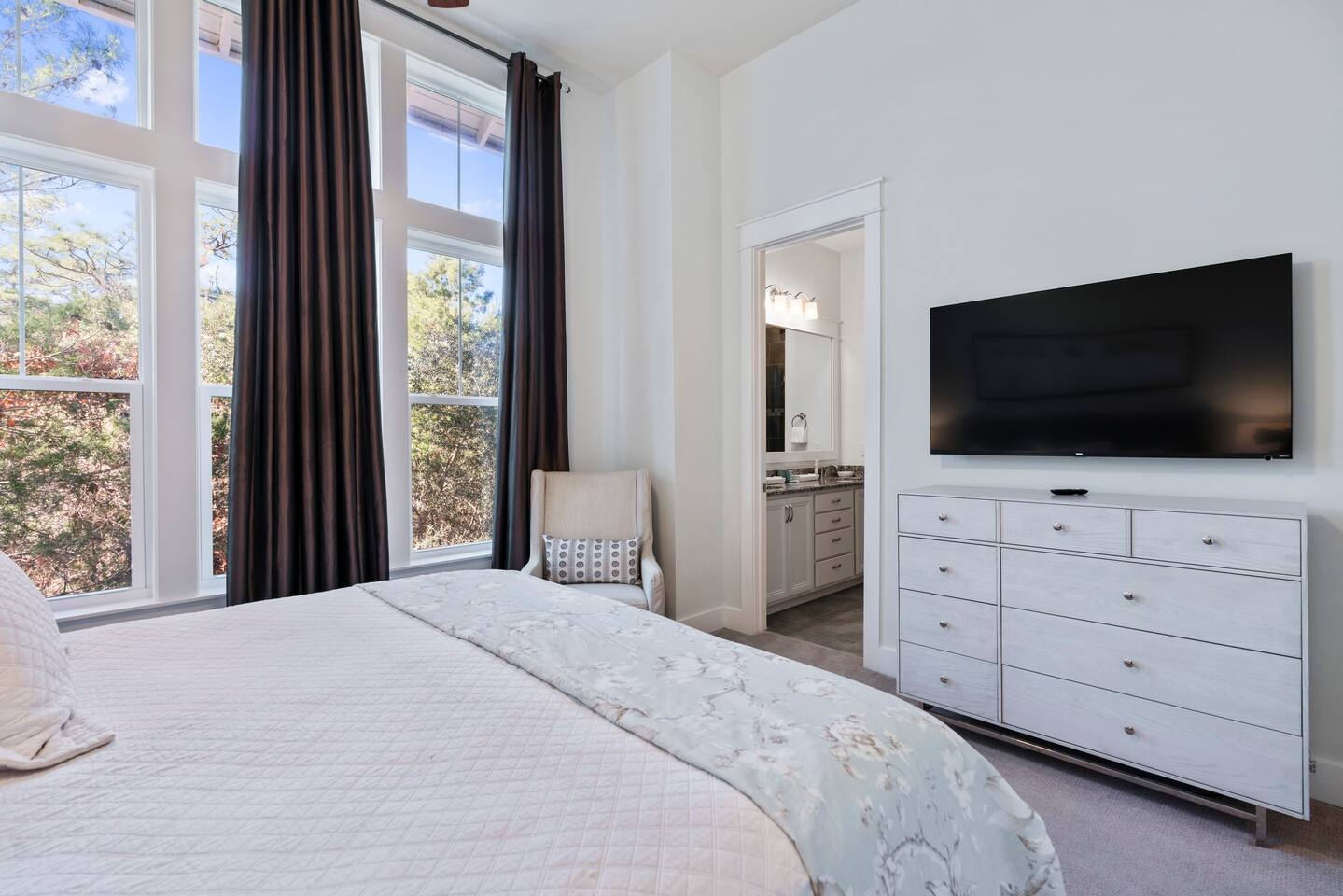 Jonesin430A is a spacious 3 Bedroom, 2.5 Bath townhome in the highly sought after community of Prominence in Watersound, Florida. The spacious kitchen is a cook's dream, as you will have all you need to prepare meals and entertain just the way you do for family and friends at home. The kitchen overlooks the living and dining area, and is equipped with a gas cooktop, stainless-steel refrigerator/freezer, and stainless-steel appliances. The open floor plan features 10' ceilings and has plenty of windows, offering lovely views of Deer Lake State Park. The living area offers 1 sofa, 1 sleeper sofa that pulls out into a Queen size bed, 55" 4K HD TV, and plenty of board games for family game night. The dining area has seating for 6, and 4 extra places at the kitchen island. The primary suite offers a king bed and an en suite bath with dual vanities, a large shower, luxury tile, and upgraded fixtures. The second bedroom has a Queen Bed, and the third bedroom is outfitted with bunk beds (Full over Full). These bedrooms have a shared bath equipped with a vanity and shower. Each bedroom is equipped with flatscreen Smart TV's.