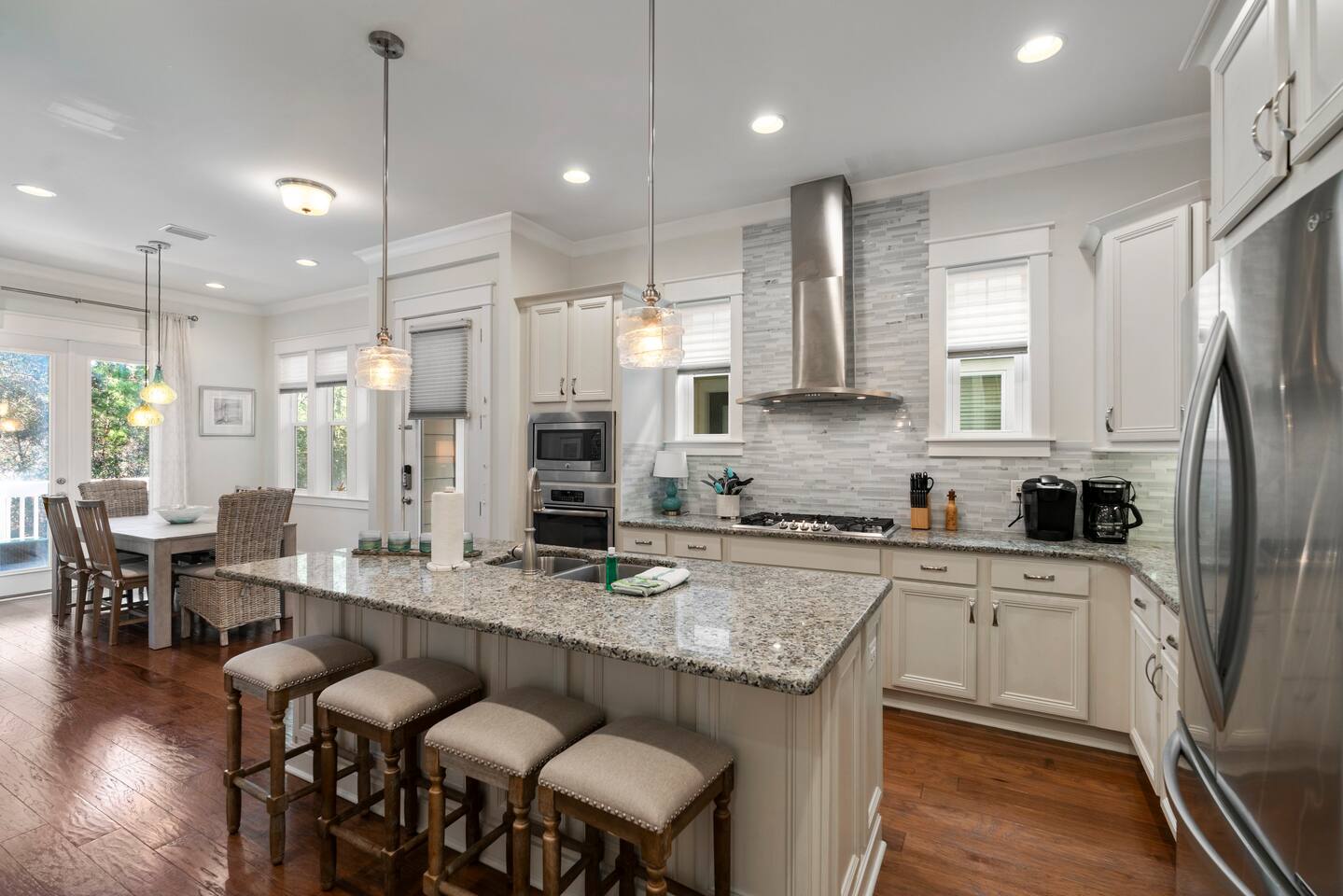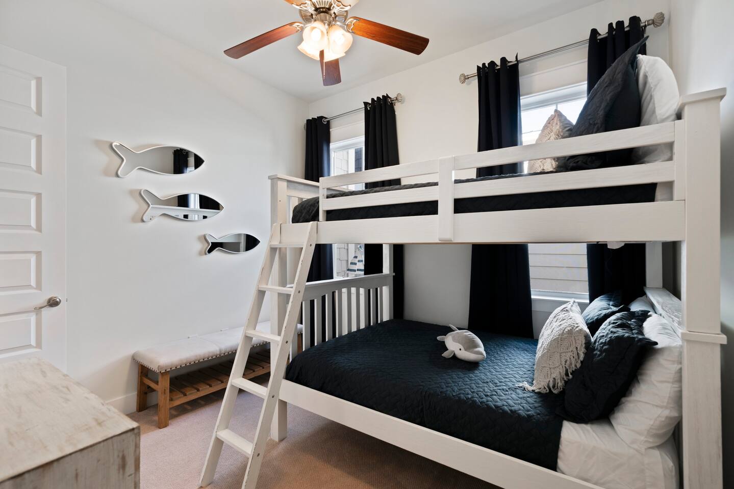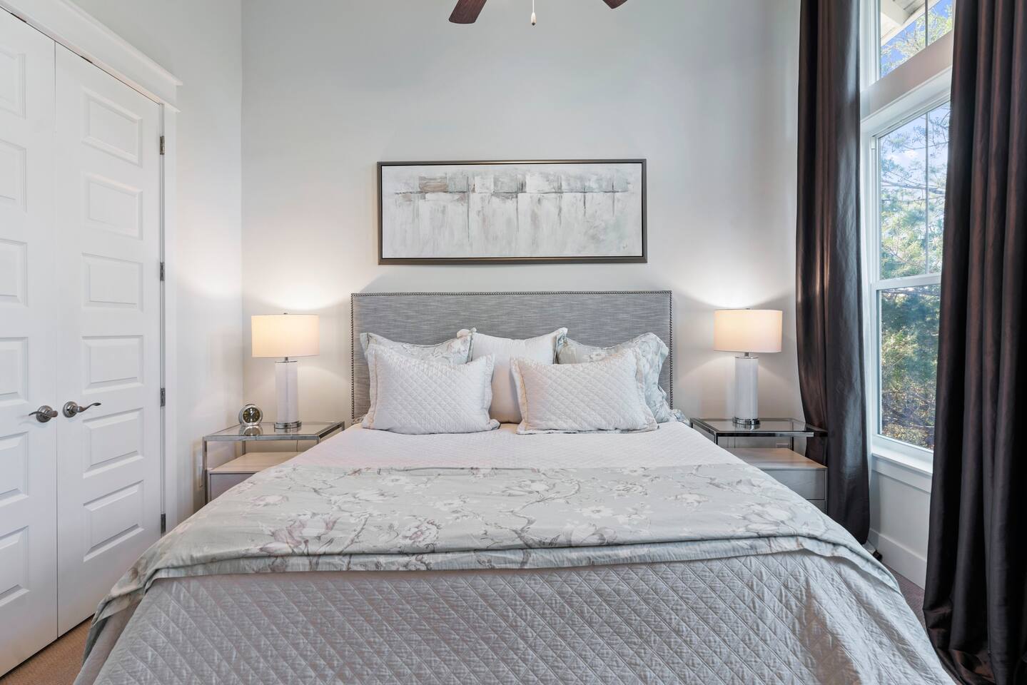 Jonesin430A is a spacious 3 Bedroom, 2.5 Bath townhome in the highly sought after community of Prominence in Watersound, Florida. The spacious kitchen is a cook's dream, as you will have all you need to prepare meals and entertain just the way you do for family and friends at home. The kitchen overlooks the living and dining area, and is equipped with a gas cooktop, stainless-steel refrigerator/freezer, and stainless-steel appliances. The open floor plan features 10' ceilings and has plenty of windows, offering lovely views of Deer Lake State Park. The living area offers 1 sofa, 1 sleeper sofa that pulls out into a Queen size bed, 55" 4K HD TV, and plenty of board games for family game night. The dining area has seating for 6, and 4 extra places at the kitchen island. The primary suite offers a king bed and an en suite bath with dual vanities, a large shower, luxury tile, and upgraded fixtures. The second bedroom has a Queen Bed, and the third bedroom is outfitted with bunk beds (Full over Full). These bedrooms have a shared bath equipped with a vanity and shower. Each bedroom is equipped with flatscreen Smart TV's.