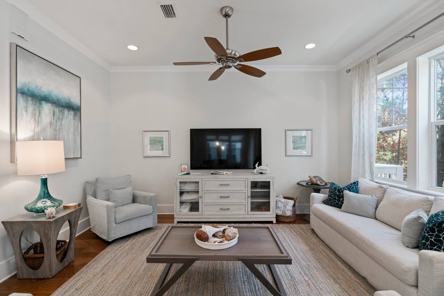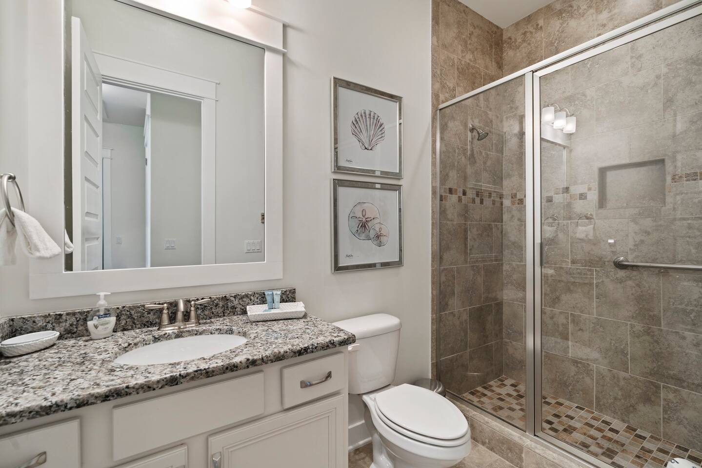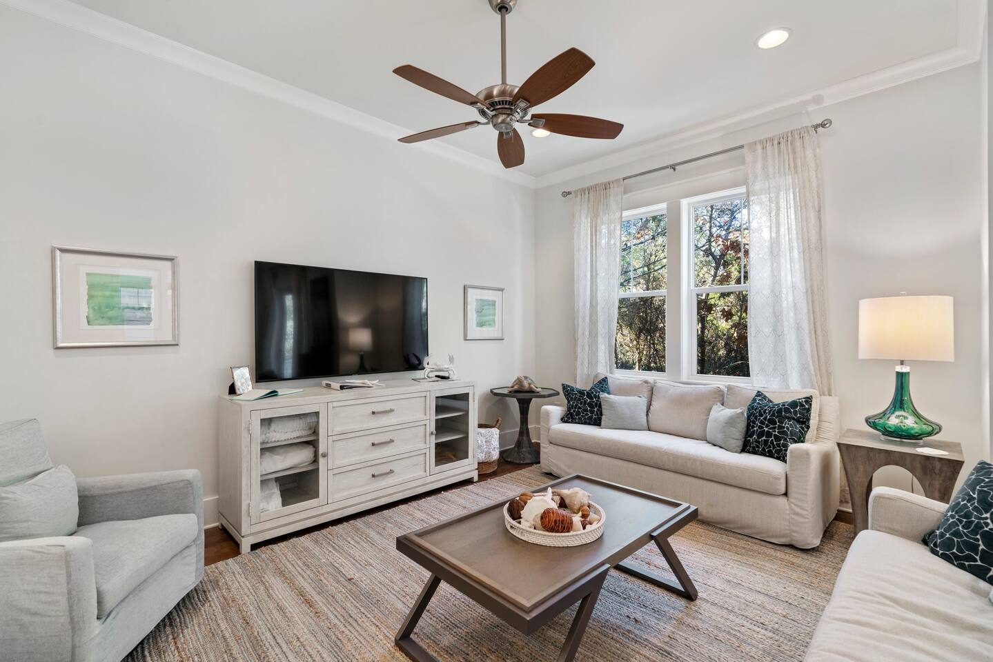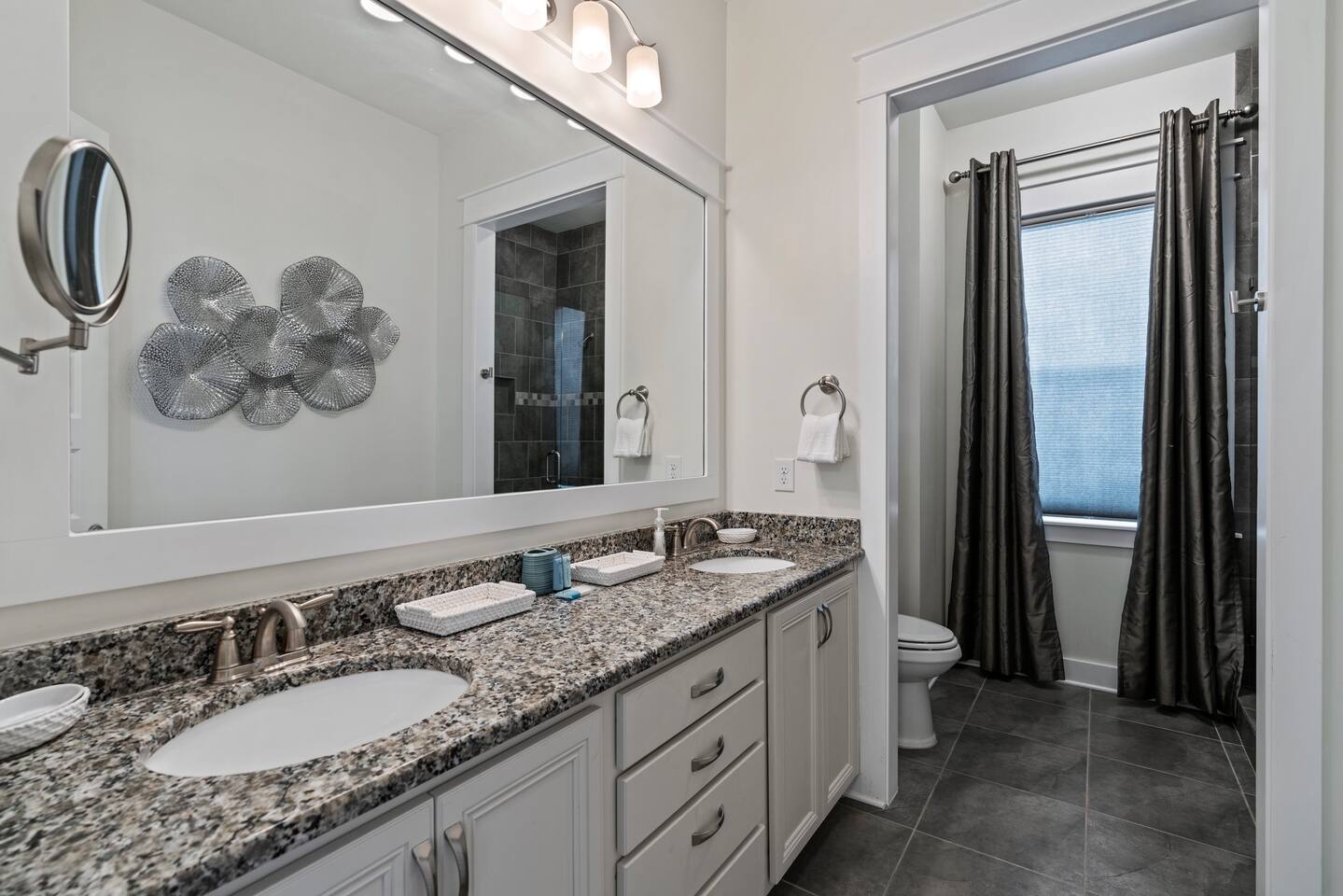 Jonesin430A is a spacious 3 Bedroom, 2.5 Bath townhome in the highly sought after community of Prominence in Watersound, Florida. The spacious kitchen is a cook's dream, as you will have all you need to prepare meals and entertain just the way you do for family and friends at home. The kitchen overlooks the living and dining area, and is equipped with a gas cooktop, stainless-steel refrigerator/freezer, and stainless-steel appliances. The open floor plan features 10' ceilings and has plenty of windows, offering lovely views of Deer Lake State Park. The living area offers 1 sofa, 1 sleeper sofa that pulls out into a Queen size bed, 55" 4K HD TV, and plenty of board games for family game night. The dining area has seating for 6, and 4 extra places at the kitchen island. The primary suite offers a king bed and an en suite bath with dual vanities, a large shower, luxury tile, and upgraded fixtures. The second bedroom has a Queen Bed, and the third bedroom is outfitted with bunk beds (Full over Full). These bedrooms have a shared bath equipped with a vanity and shower. Each bedroom is equipped with flatscreen Smart TV's.
